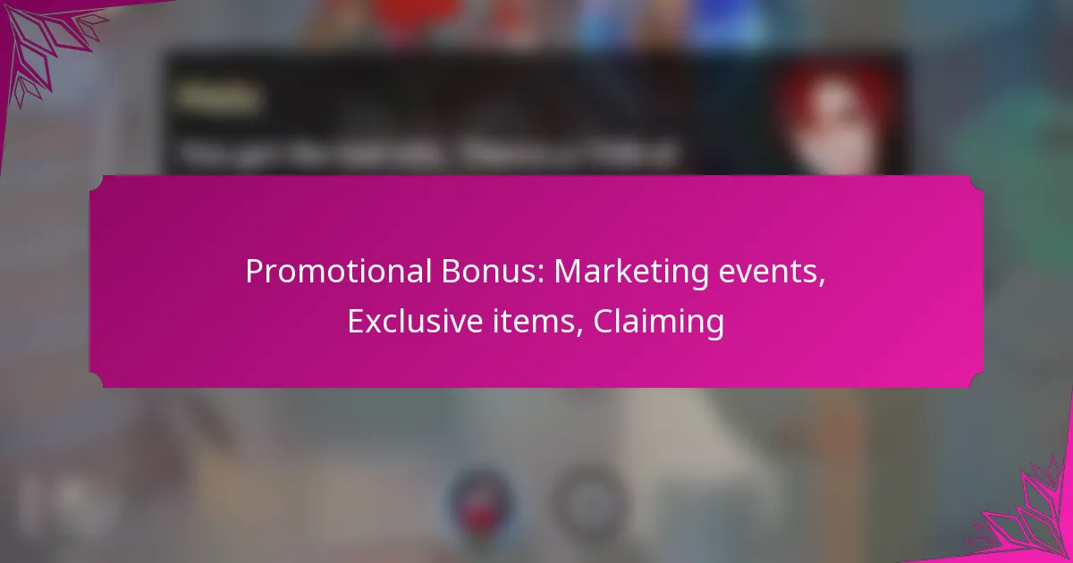 Promotional Bonus: Marketing events, Exclusive items, Claiming
